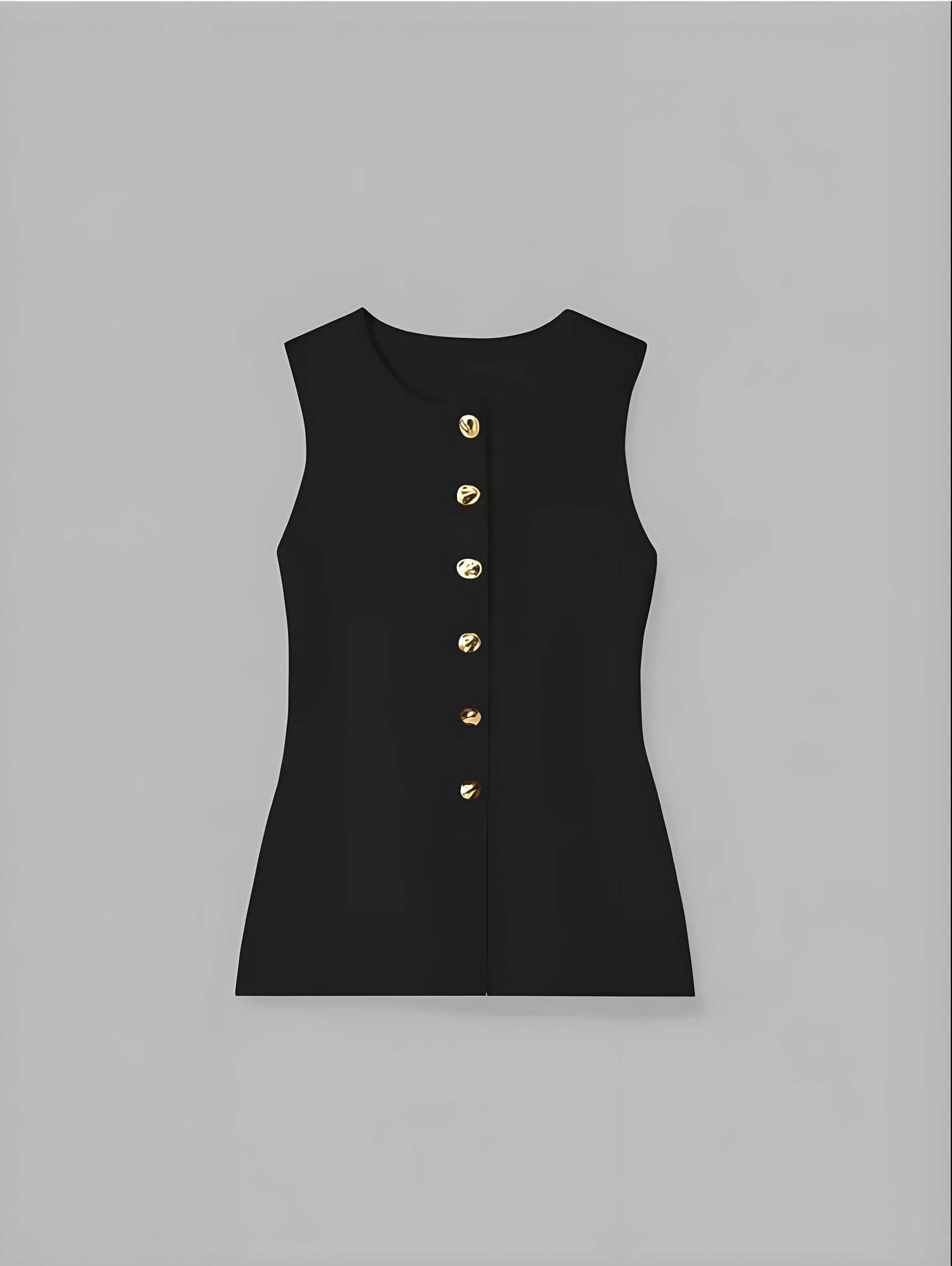 De gouden details maken van dit vest een echte eyecatcher. Het geeft je look direct een chique upgrade – of je nu naar kantoor gaat of een avond uit.