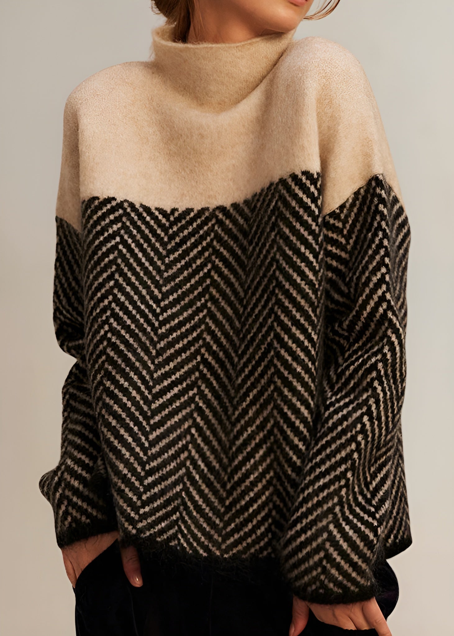 Het stijlvolle visgraatpatroon maakt deze trui uniek, terwijl de losse pasvorm zorgt voor een ontspannen, flatterende uitstraling. Combineer hem met je favoriete broek of rok – VERA™ past bij elke gelegenheid.